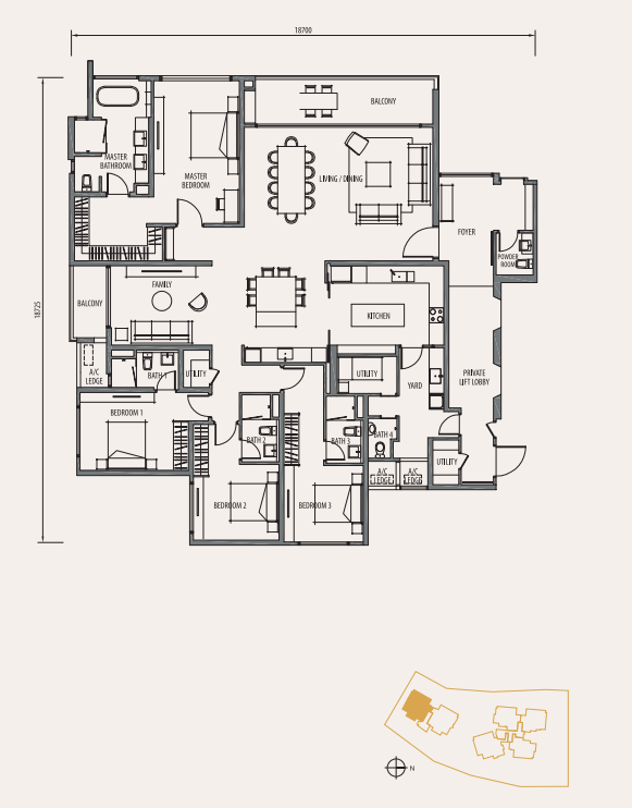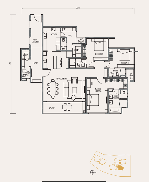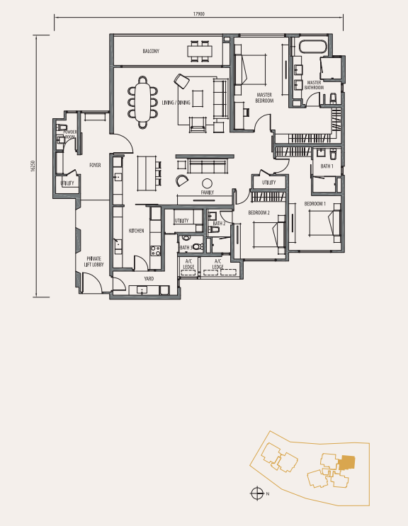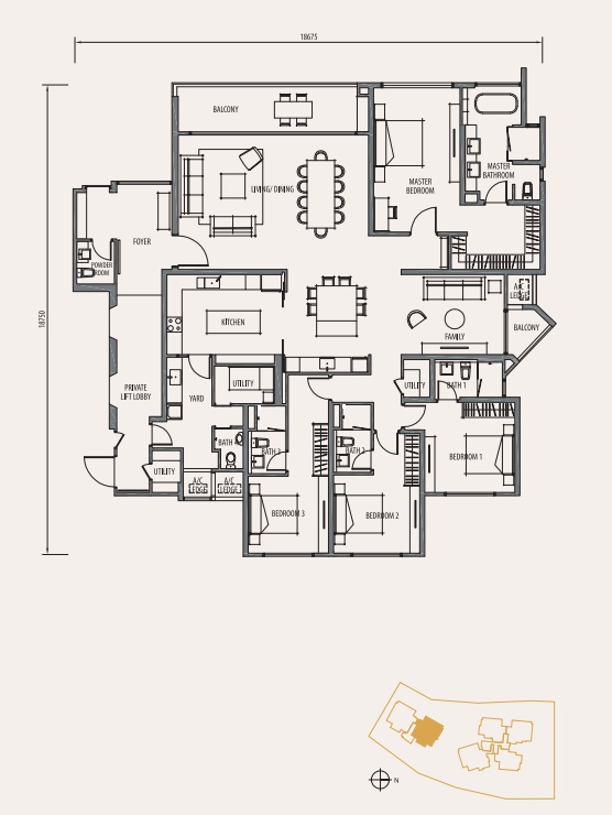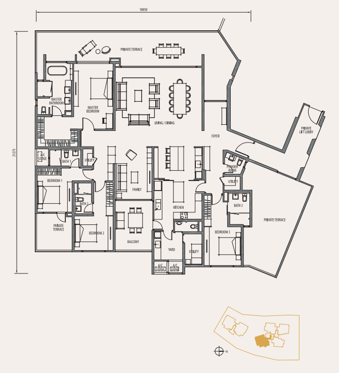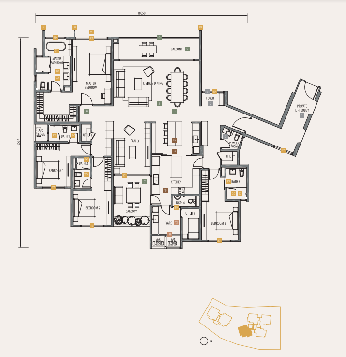 A meticulous care of golf residence comes with large family size ranging from 2300sqft to 3200sqft, suitable for multi-generations.
