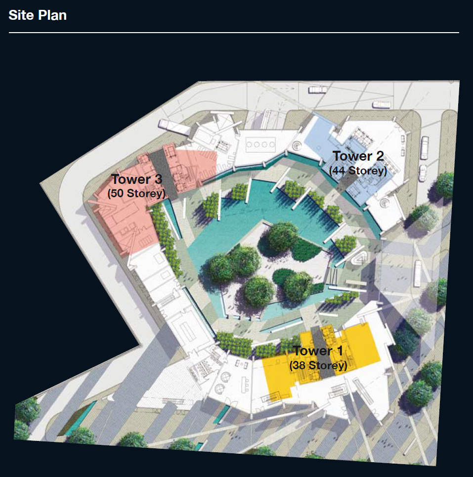 3 blocks has 38 storeys, 44 storeys and 55 storeys, respectively