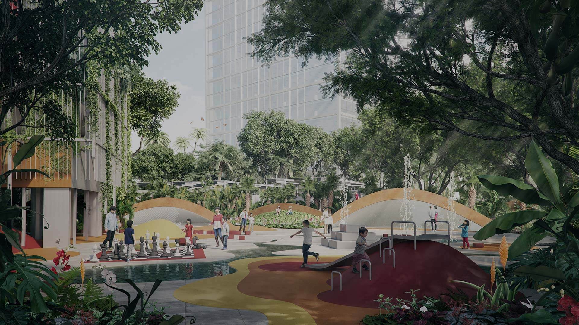 一個10英畝的激活城市公園位於Tun Razak Exchange 的中間,每個角落都是為居民和公眾的最終用途而建造的。